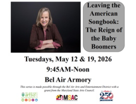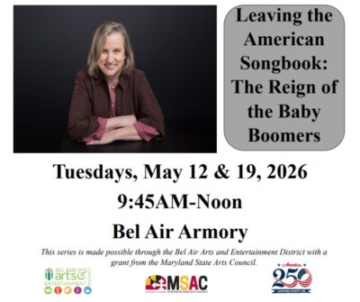 The lecture series will be held on Tuesdays, May 12 and 19, 2026 from 9:45-Noon each day (there will be a short break). Participants only need to reserve a spot for May 12, and you are welcome to come to one or both dates. This series is made possible through the Bel Air Arts and Entertainment District with a grant from the Maryland State Arts Council.