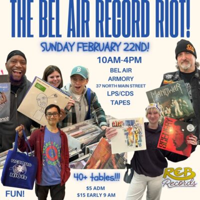 This high-energy, family-friendly event is perfect for collectors and curious newcomers alike. Early admission begins at 9 am ($15) with regular admission beginning at 10 am ($5). Come dig through the bargain bins and see what treasures you uncover. Produced in cooperation with Bel Air’s own REB Records!