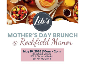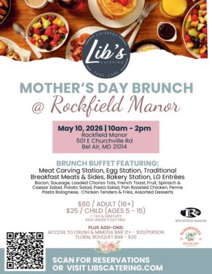 Celebrate Mother’s Day at Rockfield Manor with a festive brunch presented by Lib’s Catering. Guests will enjoy a variety of brunch favorites and chef-attended stations, including breakfast classics, carving selections, pasta dishes, fresh salads, and a bakery and dessert assortment. Gather with family and friends and enjoy a relaxing and memorable way to celebrate Mom.
