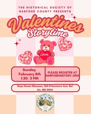 The Historical Society of Harford County hosts a Valentines Storytime Sunday February 8th from 1:30-3 pm. It will be held at the Hays House Museum 324 Kenmore Ave Bel Air MD. Stories,crafts and hot chocolate. $7.50/ person. Please visit our website at harfordhistory.org to register. This is part of the America250 celebration.