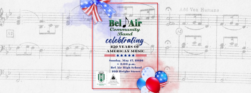 Bel Air Community Band: Celebrating 250 Years of American Music May 17 Bel Air Community Band: Celebrating 250 Years of American Music 3:00 am - 4:30 pm